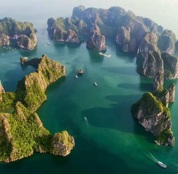 В отличие от соседнего Халонга, этот залив остается более спокойным: меньше туристов, меньше лодок и больше возможности увидеть природные формы без суеты. Карстовые скалы здесь образуют сотни небольших бухт, куда можно добраться только по воде.