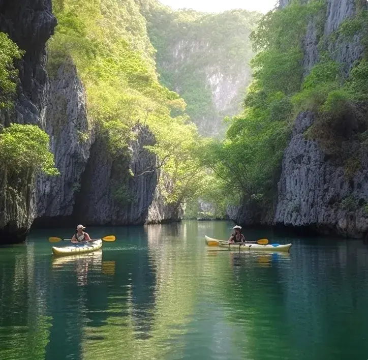 Система пещер, туннелей и озёр в этом регионе сформировалась естественным образом. Внутри — тишина, мягкий свет и формы, которые кажутся почти фантастическими. Каякинг через такие пространства даёт ощущение полного погружения в природу.