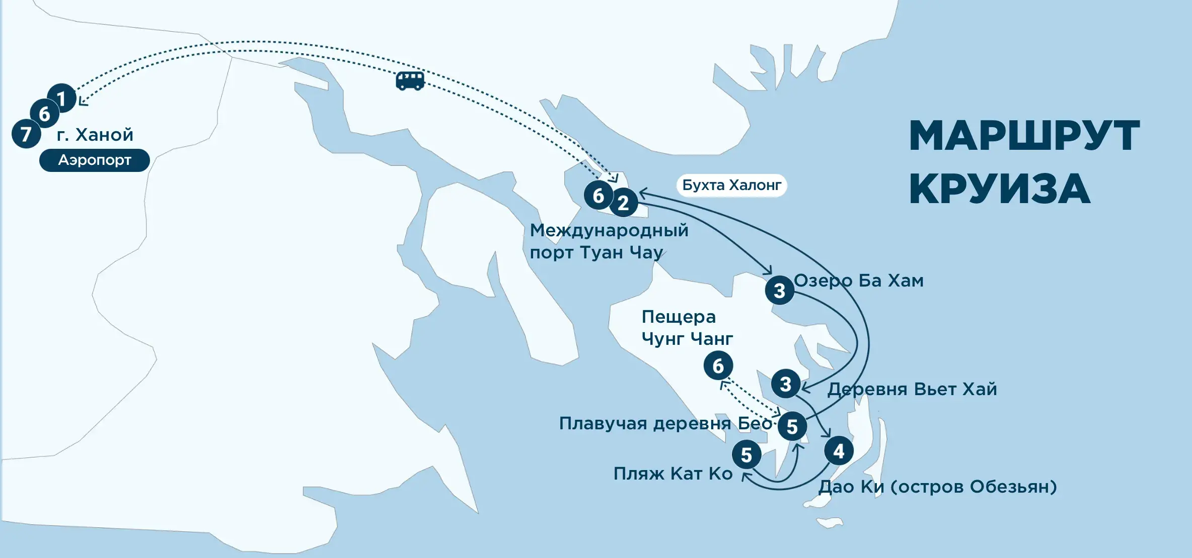 • Проживание: 2 ночи в 2х-местном номере в отеле 4* в Ханое, 4 ночи в 2х-местной каюте на борту яхты 5*