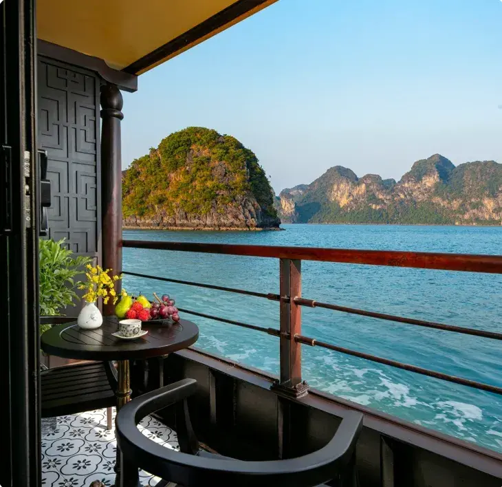 Современная бутик-яхта уровня 5*, созданная для спокойного и комфортного путешествия по одному из самых красивых заливов Вьетнама. На борту всего 10 просторных кают — каждая с панорамными окнами, собственным балконом и уровнем сервиса, сопоставимым с хорошим отелем.